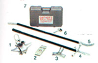 Clave 701288 - Monta y desmonta neumáticos sin cámara de 17.5"hasta 24.5" - Reduce el tiempo de desmontaje y montaje - No daña a la ceja ni al rin Incluye : (1) Clevis p/desmontar, (2) Plato rectangular, (3) Cuña, (4) Barra p/montar/desmontar, (5) Barra de palanca, (6) Guarda rebordes de ceja, (7) Estuche de plástico, (8) Lubricante stick-em Gaither, (9) instructivo en video para su uso. |